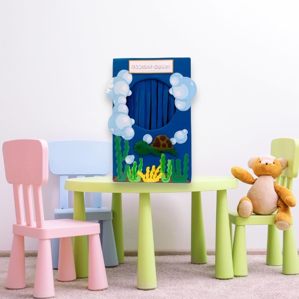 تقوم المعلمة بوضع مجموعة متنوعة من الهدايا الصغيرة مثل الألعاب، والحلوى ، والأدوات الفنية، داخل الصندوق حيث يمكنها تحفيز الطفل وتشجيعه على السلوك الايجابي من خلال حصوله على هدية من صندوق المفاجآت