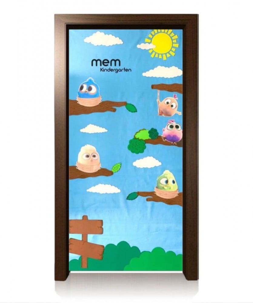 هذه الخلفية مصنوعة من قماش الجوخ والفوم المرن , مثالية لتزيين باب فصل الروضة.