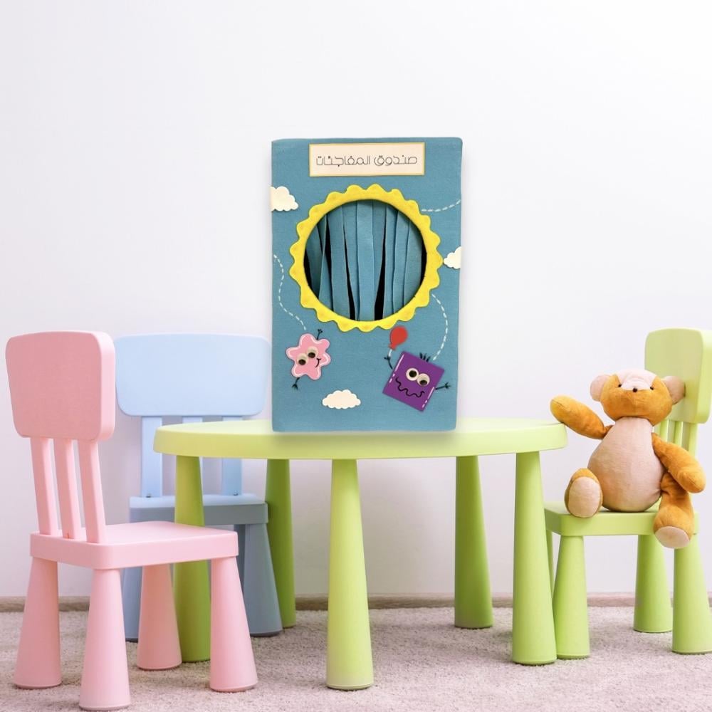 تقوم المعلمة بوضع مجموعة متنوعة من الهدايا الصغيرة مثل الألعاب، والحلوى ، والأدوات الفنية، داخل الصندوق حيث يمكنها تحفيز الطفل وتشجيعه على السلوك الايجابي من خلال حصوله على هدية من صندوق المفاجآت